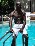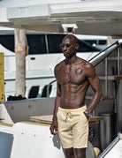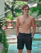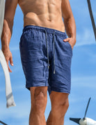 Channel the laid-back elegance of island living with our signature Bahamas Linen Shorts. Crafted from 100% premium linen, these knee-length shorts are designed for breathability, comfort, and timeless style. Inspired by the pristine beaches and vibrant culture of the islands, these men's linen shorts feature a comfortable elastic waistband with a drawstring, accented by custom metal tip ends for a refined finish. Practical side pockets and a back pocket combine functionality with a flattering silhouette.