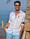 Style Name: MUSTIQUE Embrace the laid-back rhythm of the islands with our Short Sleeve Camp Collar Linen Shirt, inspired by the breezy elegance of the Caribbean. This men's camp collar linen shirt features a classic, relaxed design with a straight hem, perfect for sun-drenched days and balmy evenings. Our signature enzyme wash delivers an...