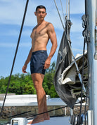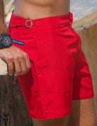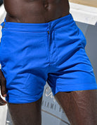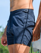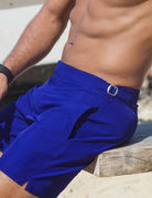 Set sail for timeless style and rugged adventure with our Hamptons shorts, the quintessential men's tailored swim trunks. Inspired by classic men's trousers, these retro swim shorts feature signature side-fasteners for a bespoke waist adjustment, ensuring a perfect fit for every maritime escapade. Crafted from quick-dry polyester, they're ready for any aquatic challenge, while the comfortable net lining provides added security and support. Equipped with practical side pockets and a concealed back zip pocket, these luxury tailored shorts blend functionality with refined elegance. Back darts enhance the shape and fit, ensuring you look sharp whether navigating the deck or exploring hidden coves. Experience the perfect fusion of form, shape, and function with our Hamptons shorts – your go-to for classic men's swimwear, vintage style swim trunks, and adventure-ready beachwear.