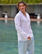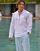 Experience laid-back elegance with our Sorrento Zip Opening Linen Shirt, now featuring customised embroidery of sea creatures. This men's zip-opening linen shirt, featuring a unique half-curve collar, blends refined style with ultimate comfort. A practical front pocket and stylish curved hem enhance its versatility. Our signature enzyme wash creates an ultra-soft, perfectly worn-in feel, making this premium linen shirt an instant favorite. Ideal for luxury casual wear, coastal lifestyle apparel, men's travel linen shirts, breathable summer shirts, and especially those seeking customised embroidery of sea creatures, it's the perfect choice for effortless sophistication.