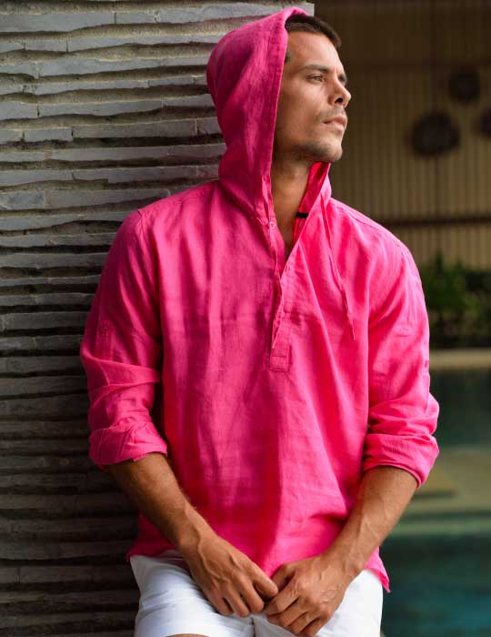 Embrace the laid-back luxury of our "Venice Beach" linen hoodie, a perfect blend of relaxed style and refined comfort. This relaxed-fit hoodie, inspired by the effortless cool of its namesake, is crafted from premium linen and treated with our signature softening enzyme wash, delivering an exceptionally smooth, indulgent feel against your skin. The distinctive half-button placket and adjustable buttoned sleeve tabs add a touch of versatile detail, allowing you to tailor your look for any occasion. Perfect for breezy beach days or casual city strolls, this men's linen hoodie provides breathable comfort and understated elegance.